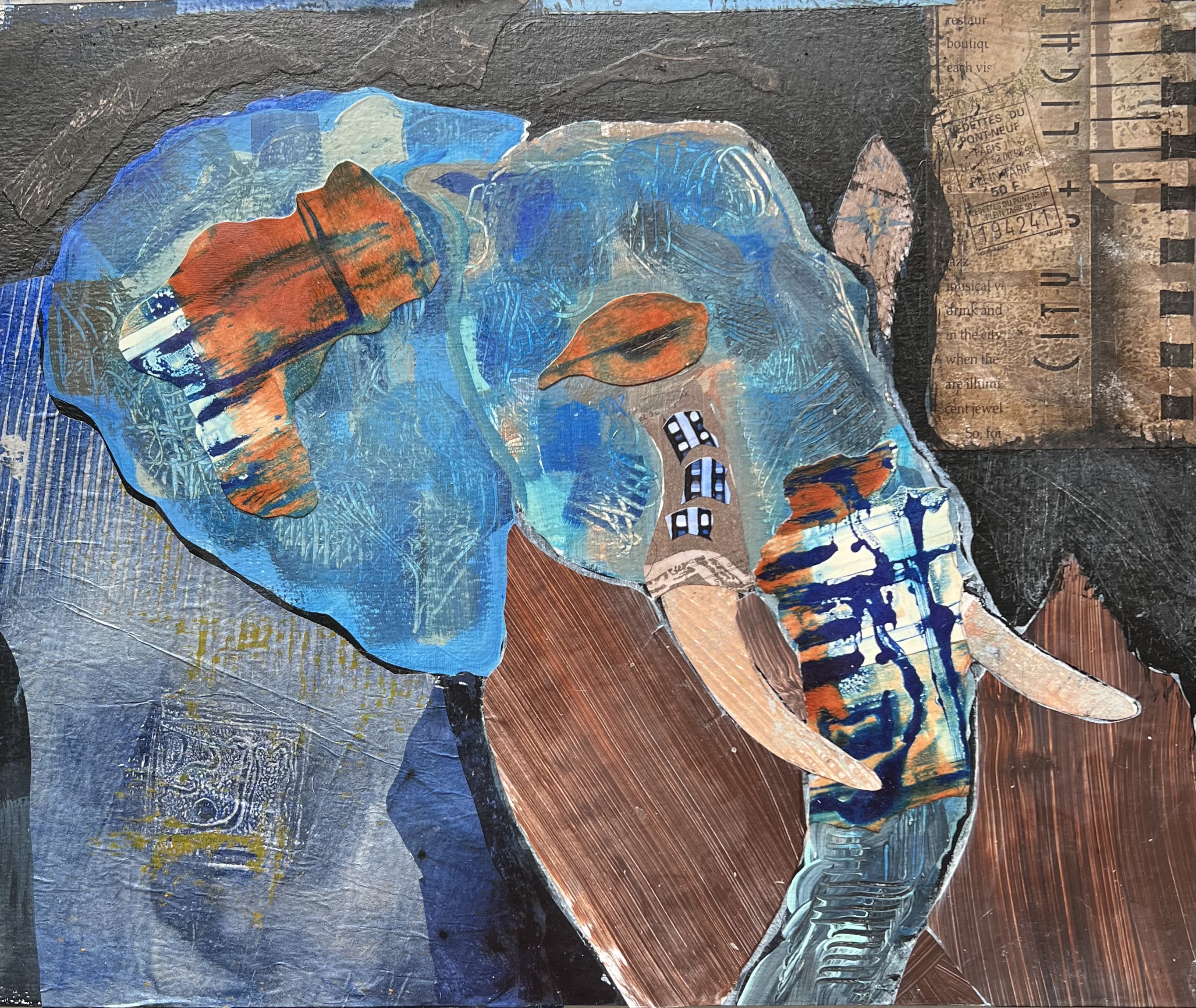 It’s so great to be back creating art with my friends! This is the elephant I was working on before I went to CA; it’s not glued down yet but it’s definitely on it’s way!