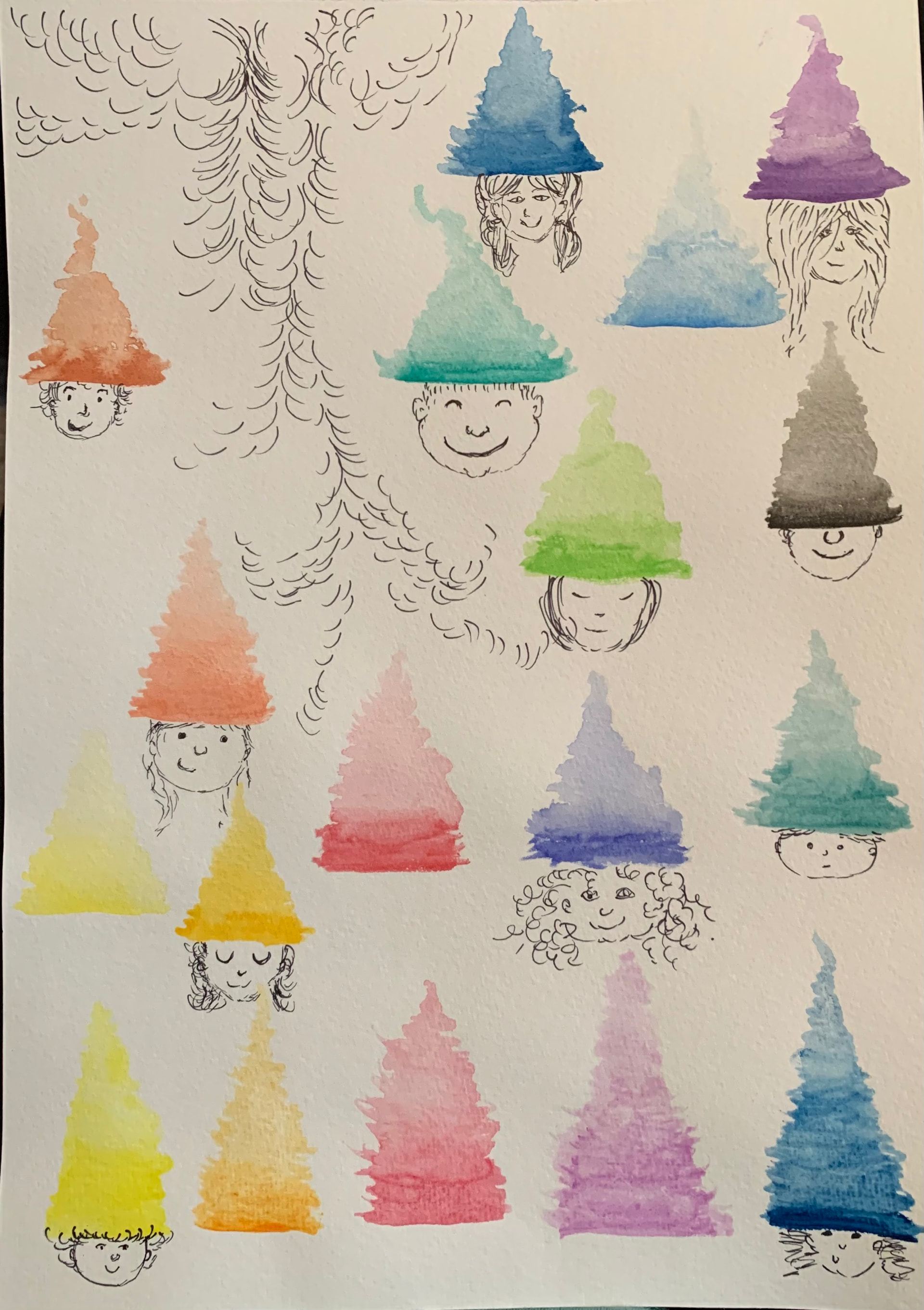 Day 5- playing with freedom. The hair was what started it. I picked golden and painted and then it felt like windswept hair so I thought I’d explore mixing skin colour paint…and then you know… figured I should add some other things! Pity my pen ran on the mouth. The face was hard to figure out how to do without ruining the feeling I wanted/felt