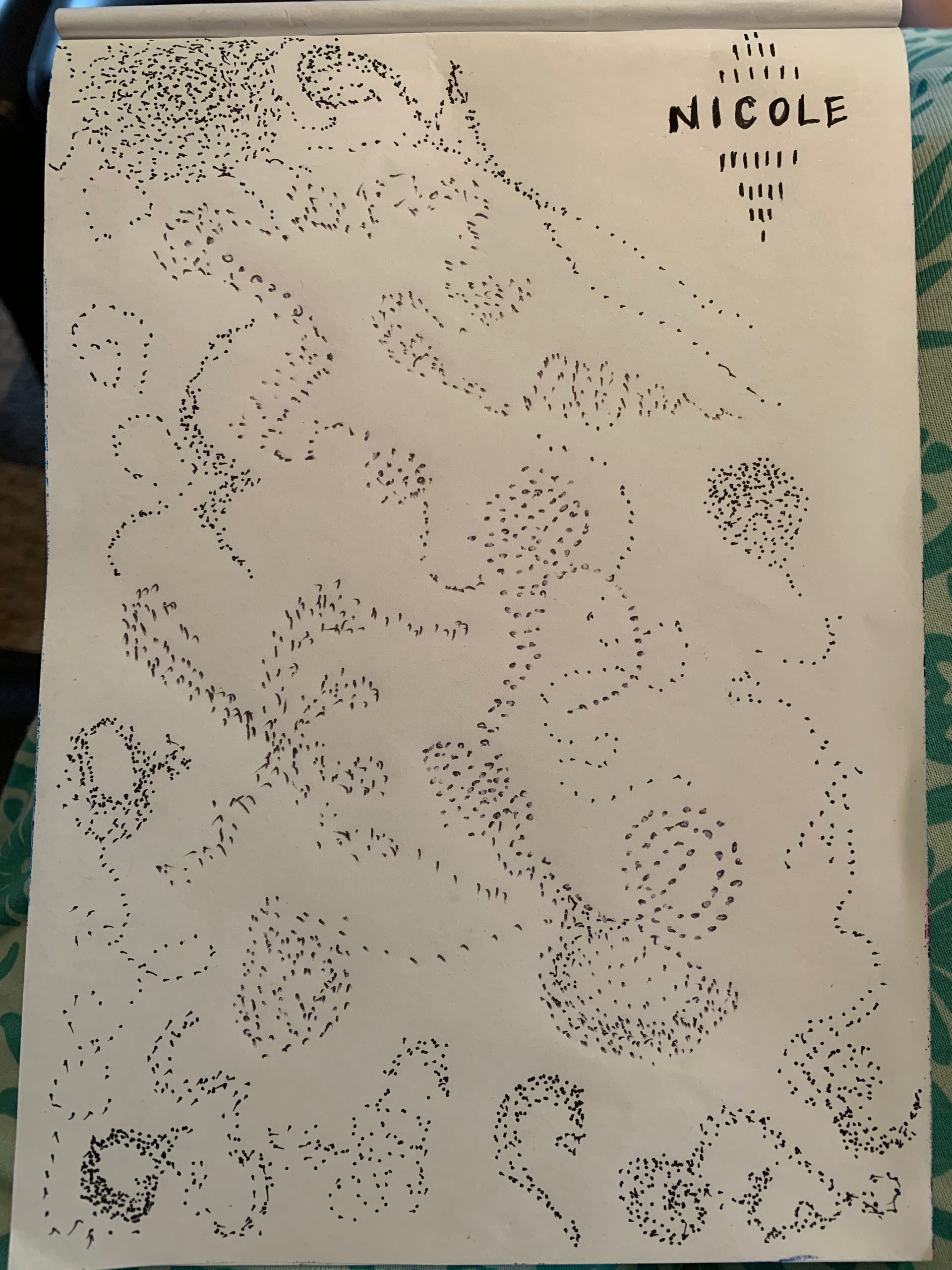 Playing with Pointillism. I’m a swirl drawer. Not sure why I wrote my name. Just felt like it. I also rotated the pic at the end. Initially I was drawing landscape.