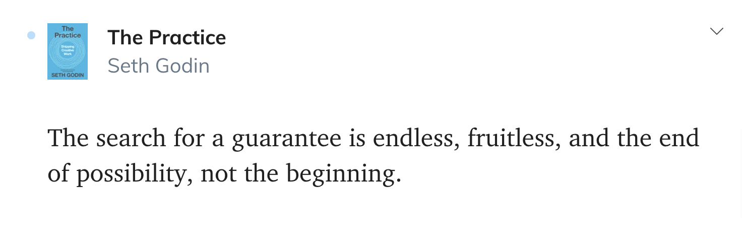 When it comes to my heartistry, the search for a guarantee feels even… crushing. As Seth points out, it ENDS possibilities.