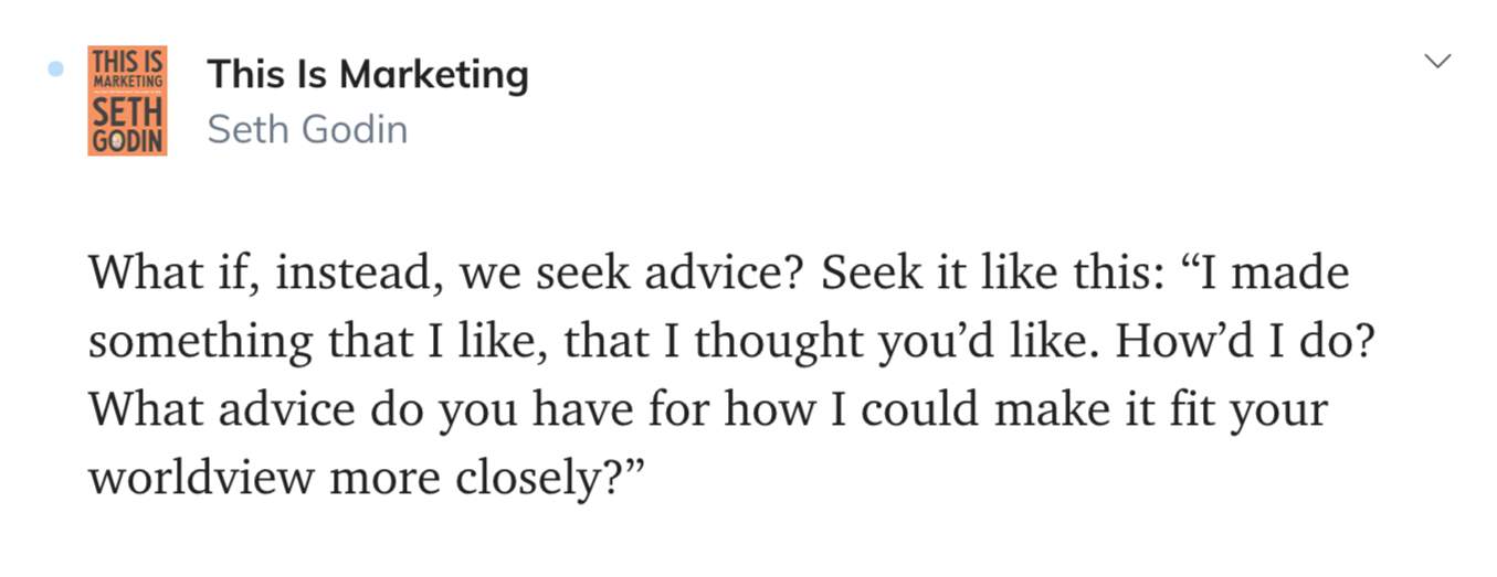 And I really am open to advice and engagement by you, with you.